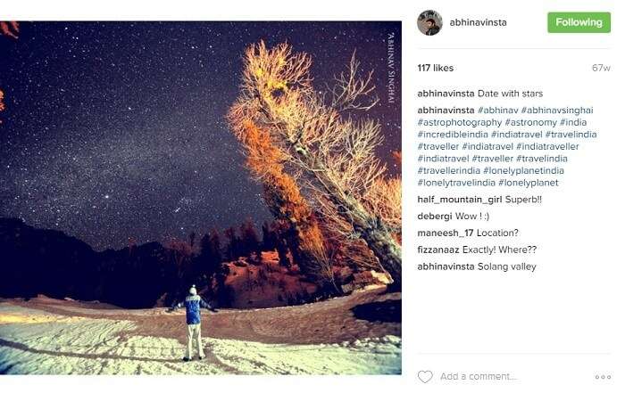 Abhinav also has a special interest in capturing skies, as evident by the majority of the sky and starry night photos in his Instagram gallery.