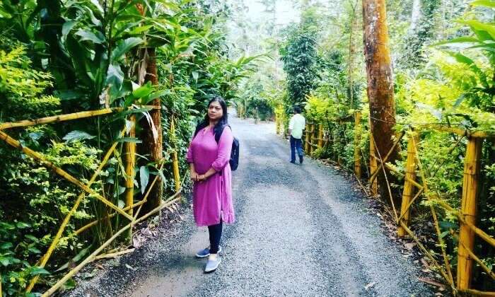 After a hearty breakfast at the hotel, we set out on a jungle trekking tour with a guide. We were looking forward to this adventurous trek since the trip’s inception, and it turned out to be better than what we expected! We walked through dense thickets, over treacherous trails, and under artistic canopies of tall trees and loved every bit of this enjoyable trek that lasted 2 hours.