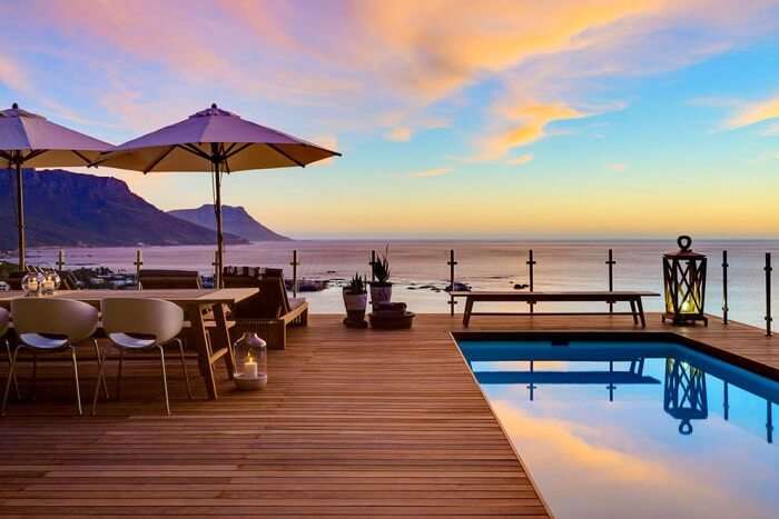A centrally located luxury guesthouse, Cape View Clifton provides uninterrupted panoramic views of Clifton, Camps Bay, and the Twelve Apostles. Refurbished recently, each suite of Cape View is designed to provide privacy and the utter comfort in the optimised, intimate space created for the enjoyment of guests. Among the best hotels in Cape Town, it offers guests of all kinds a laid back and relaxed stay. All suites are designed to offer the comforts of home and possess private outdoor balconies overlooking the stunning coastline. The central pool deck is a serene spot for guests to relax and enjoy the Cape summer with a glass of wine in hand and a spectacular sunset in the front. All major tourist attractions of Cape Town are just a short drive away from here, making this one of the best hotels in Camps Bay Cape Town.